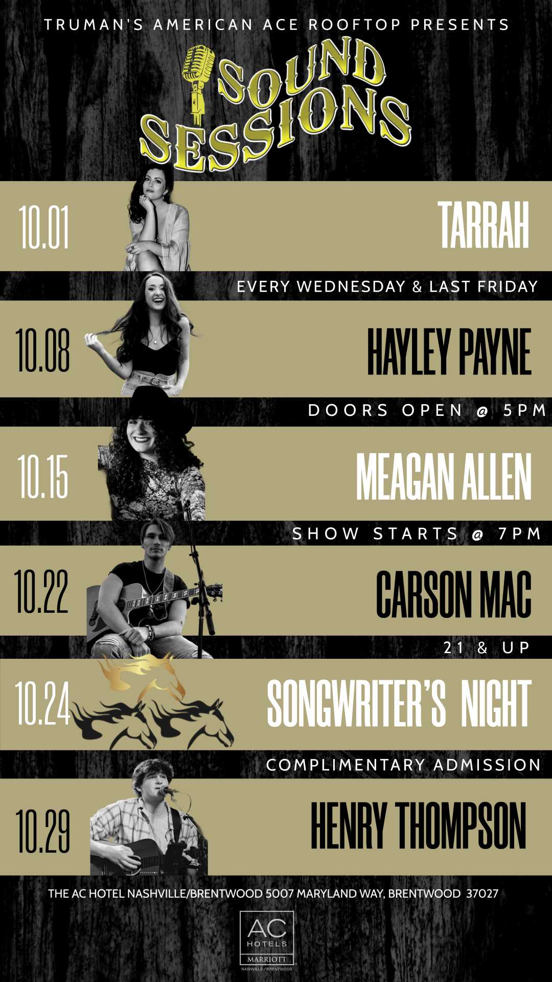 Truman's American Ace Wine & Cocktail Bar 5007 Maryland Way,, Brentwood, TN, United StatesFeel the sound every Wednesday | 7 PM | Live Music + Good Vibes SONGWRITERS NIGHT The last Friday of […]